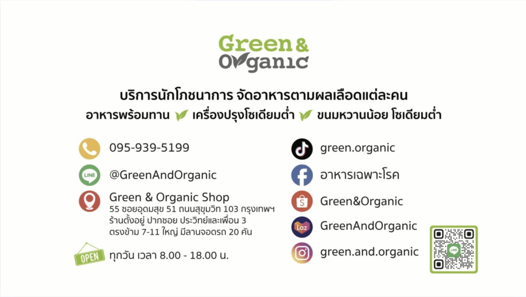 อาหารเรามีหลากหลายเมนู หลากหลายรูปแบบ ที่ออกแบบเฉพาะบุคคล เฉพาะโรค ระยะของโรคหลักและโรค แทรกซ้อน โดยมากจะเป็นลักษณะแพคเกจอาหารรายเดือนส่งถึงบ้าน สอบถามแพคเกจโปรโมชั่นแต่ละเดือน ได้ที่ @greenandorganic หรือ โทร 095-939-5199
