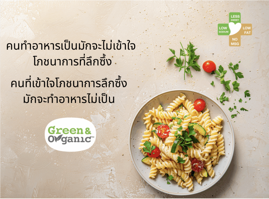 กรีนแอนด์ออแกนิค รวมนักกำหนดอาหาร นักโภชนาการ และเชฟไว้ที่เดียวกัน ทำงานร่วมกันตลอดเวลา เพื่อ ให้อาหารที่ออกมาถูกต้องตามโภชนาการที่เหมาะสม อร่อย น่าทาน และผู้ป่วยกินได้หมด ได้กินอาหารเป็นยา อย่างแท้จริง