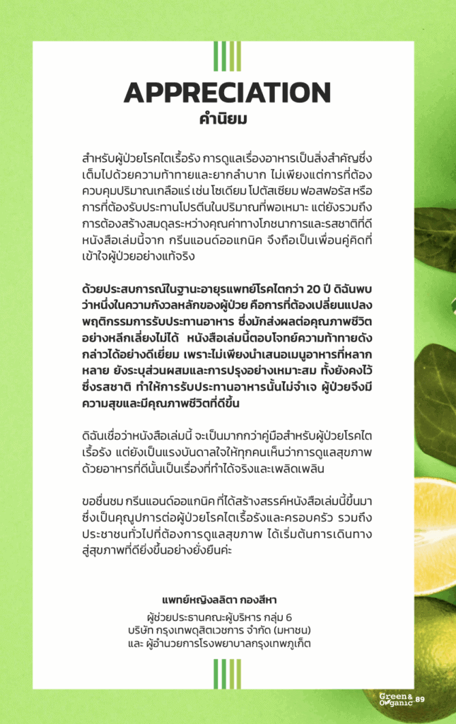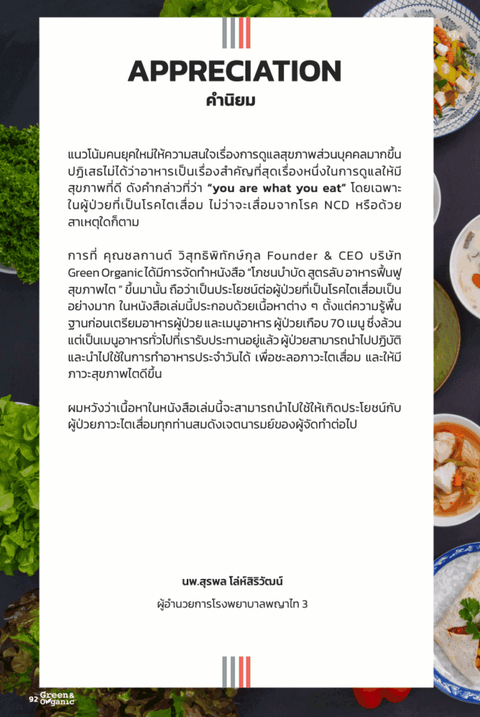 - หนังสือโภชนบำบัด สูตรลับ อาหารฟื้นฟูสุขภาพไต